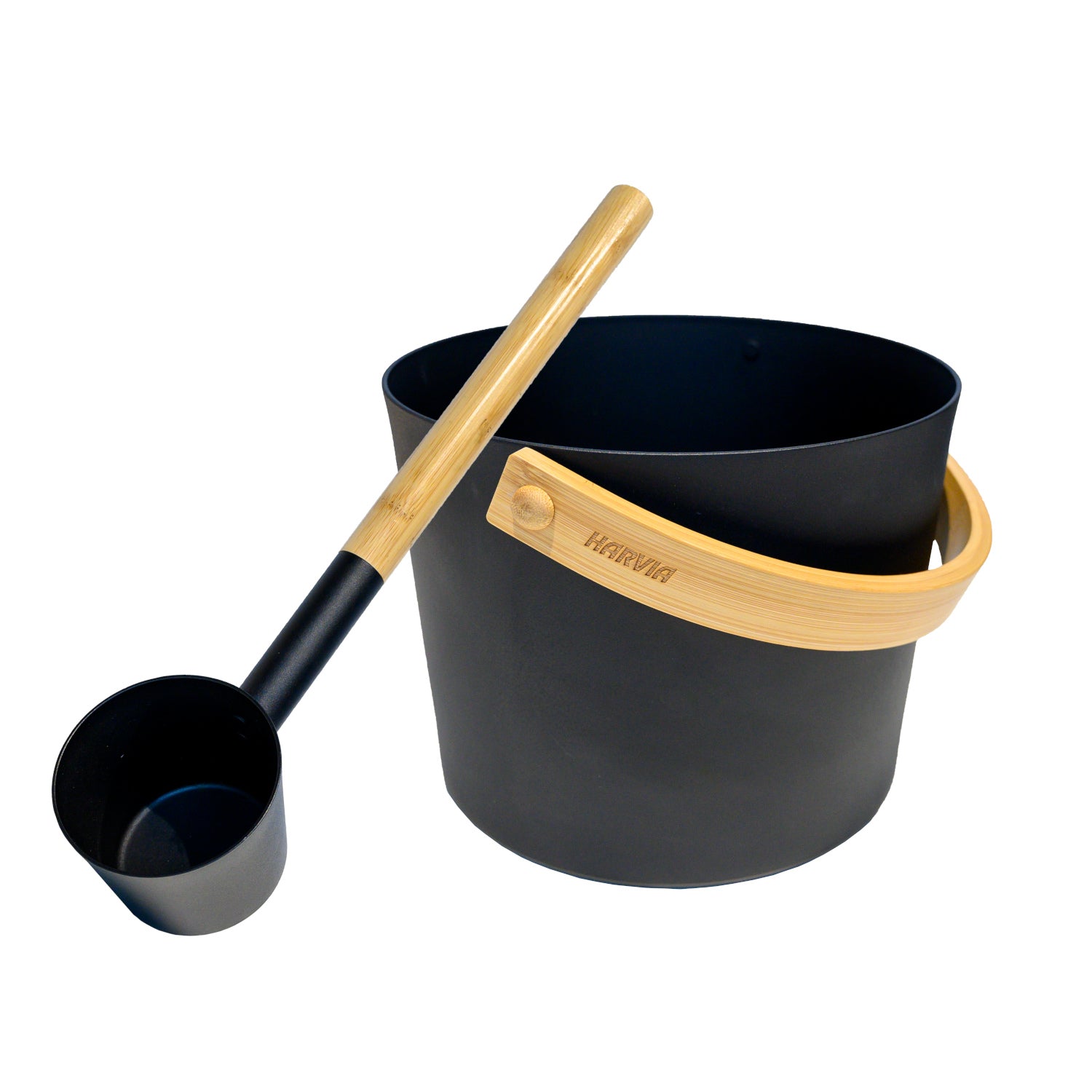 Harvia pail and ladle set "Steel Black"